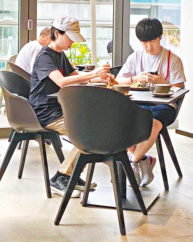 【爆相爆片】葛民輝一家受武肺爆第三波、食肆食堂每枱只限坐兩人影響,食飯要分枱坐。讀者張先生透過《蘋果》「爆相爆片」報料,指剛過去的周日下午1時,於銅鑼灣一間cafe見到阿葛一家三口開餐。張先生表示最初以為阿葛與太太撐枱腳,未幾才發現其25歲兒子Jabez坐隔籬枱:「阿葛太太坐坐吓突然走去隔籬枱坐,我先知佢個仔喺度。」