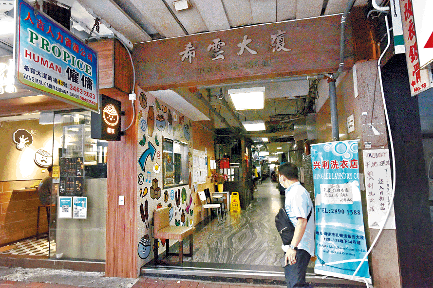 銅鑼灣希雲大廈衞生欠佳,後樓梯棄置了大量垃圾。有不願透露姓名的住户稱,居住樓層幾乎全層均為外傭入住,間中看到她們未有戴口罩。有住戶亦指不時見到有外傭出入,多為印傭,「幾個幾個咁出入」,估計她們多人同住在外傭宿舍。
