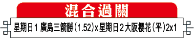 同日另一場廣島三箭對湘南比馬,廣島今季有遇強即屈之感,惟面對實力較低球隊表現尚算正常,相信今仗有主場之利下可擊敗護級分子湘南,直取主W。