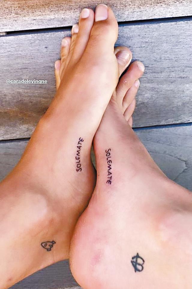 前日是Cara的28歲生日,二人分別在Ig分享撐枱腳的情況,當中可見到她們以燭光晚餐慶祝,Cara又穿上印有Kaia樣貌的外衣。其後她們更向fans展示腳板內側「SOULMATE」的情侶紋身,二人一左一右的腳板「依偎」着對方,可見關係已昇華。