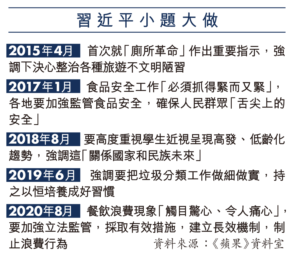中國國家主席習近平下令制止餐飲浪費行為後,立法工作隨即展開。全國人大常委會法制工作委員會表示,決定成立工作小組展開有關立法工作,目前正在梳理研究國內外相關立法、文件和政策措施。當局並全力開動宣傳機器宣傳「反對浪費」,其中央視點名指摘網絡大胃王「吃播」鼓吹暴食文化,有人氣「吃播」賬號在壓力下被封,無法再表演「食相」。