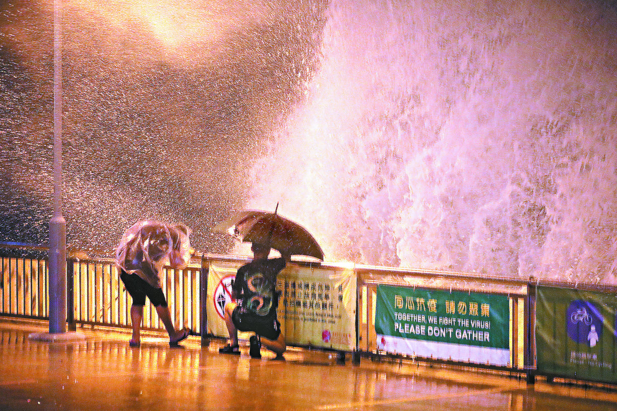 【本報訊】天文台今年首掛八號波,熱帶風暴「海高斯」昨持續增強,天文台昨晚上10時40分發出八號熱帶氣旋警告信號,預料維持至今晨一段時間。預測本港吹東北風, 中心風力每小時105公里,「海高斯」今早會在香港西南約100公里內掠過,今日天氣轉差,會有狂風大驟雨及雷暴,海面會有大浪及湧浪,市民應遠離岸邊;加上受風暴潮影響,今早低窪地區可能出現淹浸或海水倒灌。