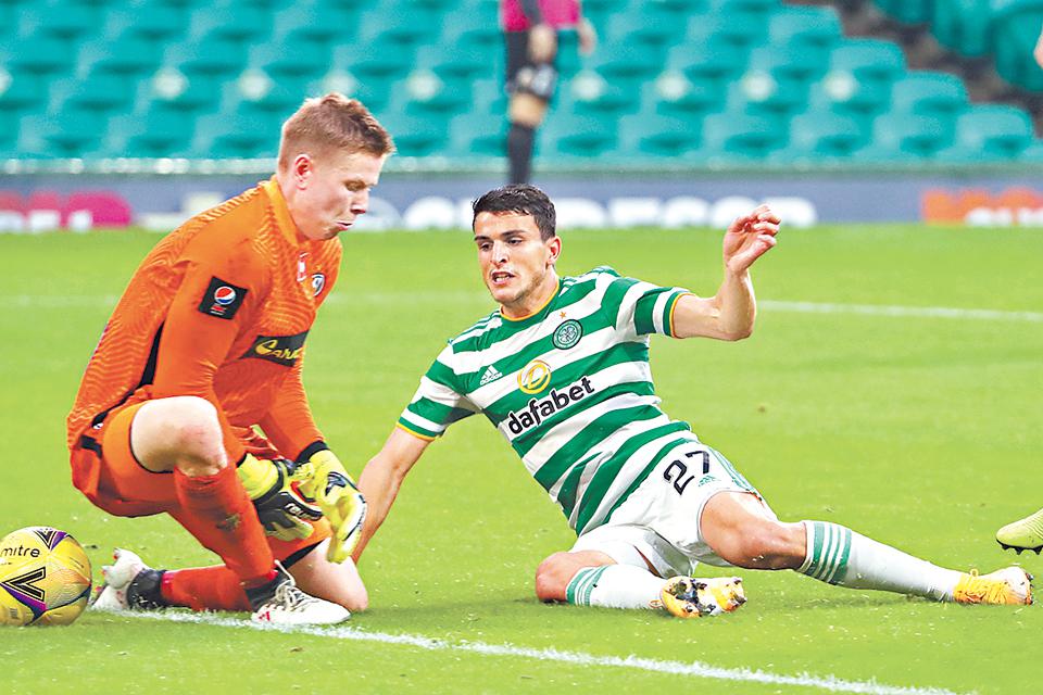 20/21歐聯第1圈外圍賽已正式展開,蘇超班霸些路迪(右)淨勝冰島球隊雷克雅維克6:0晉級。路透社