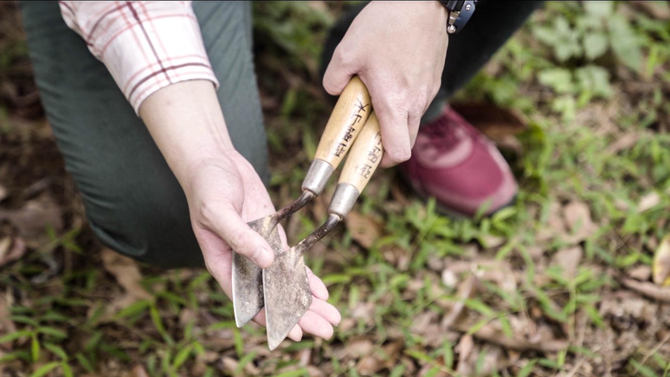 我們由上碗窰行至下碗窰,一直走,地下有不少碗的碎片,他隨手執起一塊印有菊花紋的碎片,並說:「這隻碗應該是清代中晚期,大概有200至300年歷史,我們作為考古學家,平日要自己落手落腳掘起文物,將歷史發掘出來。如果一般市民就不要帶走,看完就放回原來位置,據《古物古蹟條例》,任何古物或者假定古物由發現那刻,已屬於香港政府擁有。」考古工具除了用上鋼水鏟,大面積的則需要用到大泥鏟,還有一個探地雷達,大約探測到地底會有甚麼東西,但最後都要親自去掘才能準確。