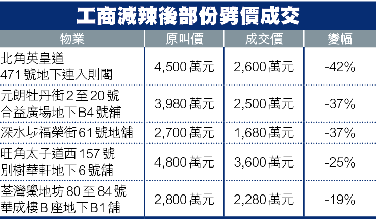 【本報訊】金管局上周宣佈工商舖「減辣」,市場過去一周確有反彈迹象,美聯數據顯示,相關買賣成交錄約47宗,較減辣前升逾四成。不過,有業界人士指出,工商舖成交宗數仍處低位,加上市場不乏劈價成交,反映減辣力度不足,或需再上調按揭成數,以及降低相關印花稅,才能有效救市。