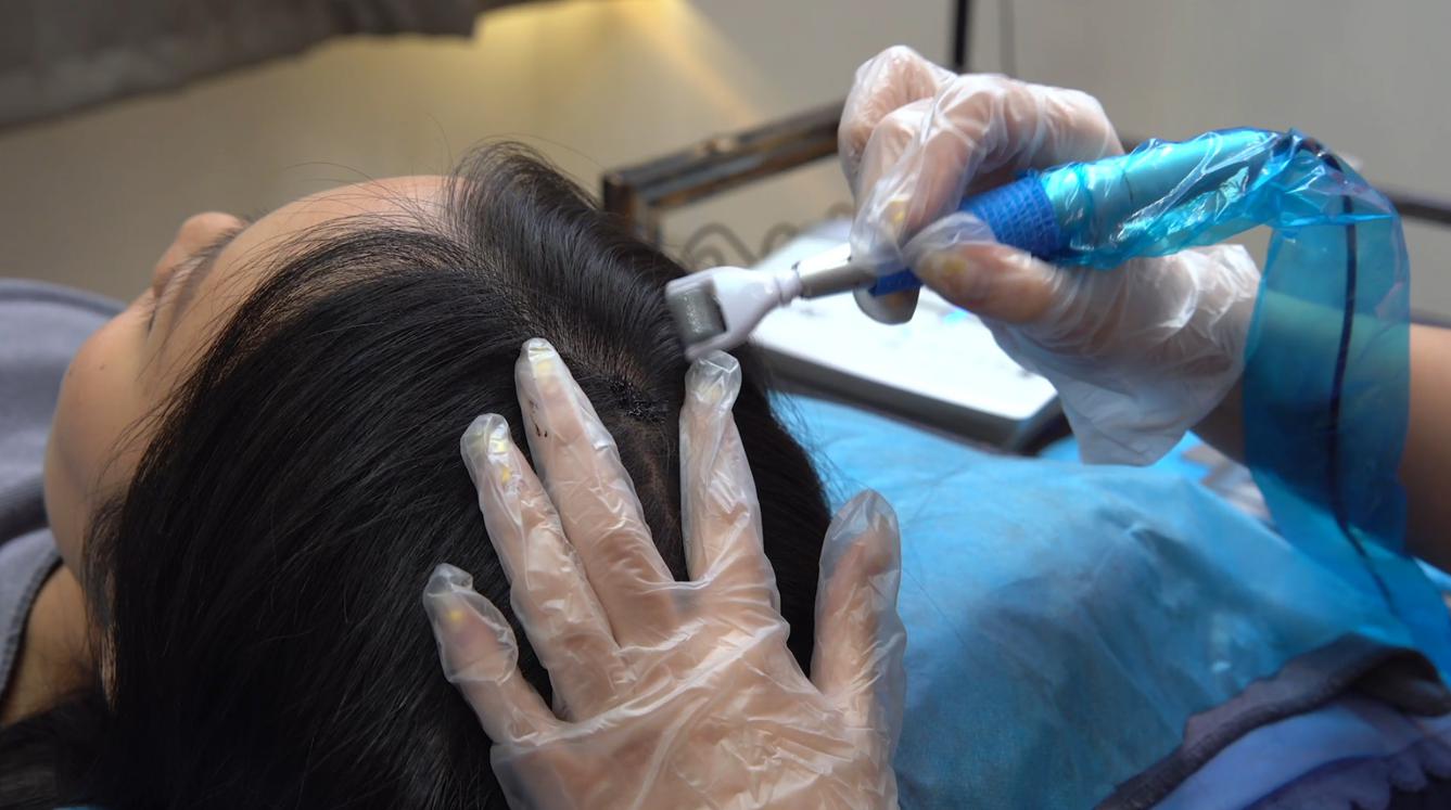 至於有頭髮稀疏問題,可以利用紋髮解決,原理和紋眉毛紋眼線很相似,NPM紋髮專家Za老師表示,NPM會使用專利滾輪紋髮,滾輪上有56支針,不同位置會用不同大小的針頭,顏色深淺都可以做到,適合任何脫髮類型如髮界變闊、髮線向後移、地中海、全光頭等。紋髮材料使用純天然植物色素,不傷毛囊,顏色可保留3-5年,隨皮膚新陳代謝漸漸褪色;如果想keep住有紋髮色或脫髮範圍大了,顏色淡了後簡單補色就可以。