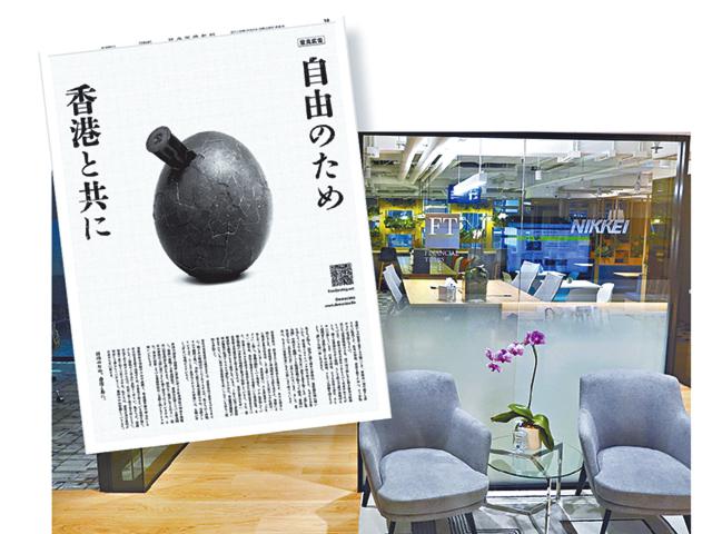 法新社報道,本月10日,即警方搜查蘋果日報大樓當日,有三名警員持法庭手令闖入《日經》辦公室調查。報道引述消息稱,警方調查的原因,是基於一年前《日經》曾刊登一則以香港眾志名義呼籲國際支持反送中運動的廣告,該廣告以眾籌形式刊登。除《日經》外,該廣告亦於日本等世界各地報章刊登。