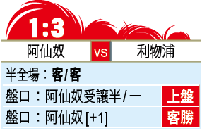 此外,槍手亦因為收「咧」較遲,開操亦同步推遲,期間只進行了一場季前賽,以4:1輕取英甲中下游球隊米爾頓凱恩斯,戰績不值一提,首席射手奧巴美揚該仗正選,卻沒有進賬,狀態未起。好消息是門將賓特尼奴已復出,惟上季復賽後表現甚佳的達米安馬天尼斯,則因要接受隔離延遲歸隊未必夠「弗」在今場把關;加上有梅斯達菲、加比爾馬天尼利等傷兵,新兵韋利安上陣機會一半半,若兩軍維持上季班底應戰,利物浦明顯勝一籌,上盤可取。