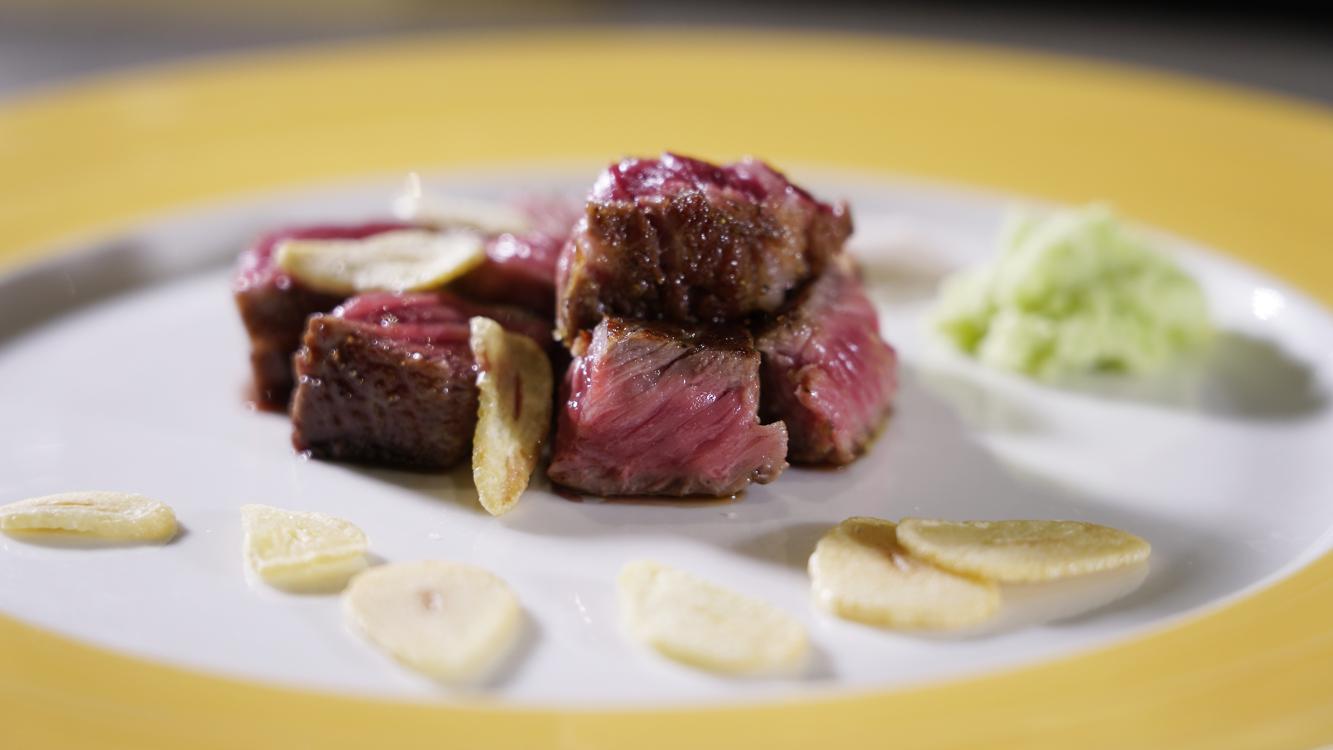 Mok San在鐵板燒界縱橫超過四十年,1979年在中環大和飯店入行。「那時不過打算做暑期工罷了,甚至不知那是家日本餐廳,開始時便做鐵板燒的㨘板清潔。」他笑說。餐廳的一切讓十六歲的他感覺新鮮,便決定輟學入行。「記得有一次,有韓國客人包場,其中有一枱客人都是小孩,日本師傅便叫我去試一下,那是我第一次做鐵板燒,其實我也很緊張,鐵板下雙腳都在震,而且初時不太適應高溫,大腿的皮膚也燒到起水泡。」80年代,香港經濟起飛,本地日本料理店如雨後春筍,Mok San肯學肯捱,又去進修日語,讀透各式各樣的料理專書,力求上進。後來,他輾轉到過大關、千登世等多間當時名店,更獲幾間五星酒店餐廳賞識,先後入職日航酒店的嵯峨野、港島香格里拉酒店的灘萬等。「直至加入香格里拉集團,有機會晉升至華人總廚一職,真的感覺自己去到另一層次,亦發覺自己有很多不足之處,要花更多時間去鑽研廚藝,學習怎樣去管理一個團隊。」