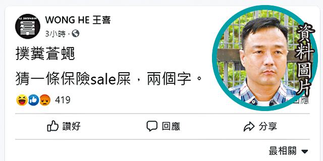 林作然後指:「最不要得的是,佢最新攻擊我的post裏面一個hashtag講到聽聞我媽媽借財仔畀錢我媾女,呢種毫無事實根據嘅言論,其實對我而言唔叫誹謗中傷我真係唔知係乜。我保留一切追究權利,雖然學我老母話齋『識佢老鼠』。」而王喜昨日亦加入戰團,在fb寫道:「撲糞蒼蠅,猜一條保險sale屎,兩個字。」