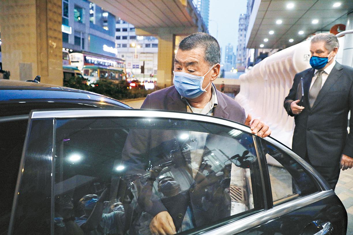黎智英昨到警署後被扣逾六小時才獲釋;壹傳媒行政總裁張劍虹亦准續保,被問及被捕至今心情,他只說:「平常心。」