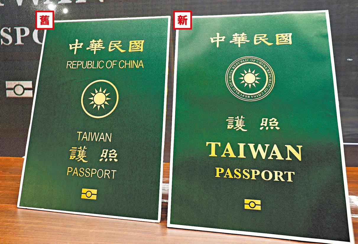 台灣昨宣佈新護照樣式,新護照保留現行護照封面上的中文「中華民國」,但就把「REPUBLIC OF CHINA」縮小,變成圍繞國徽的小字,並放大「TAIWAN」字樣。新版護照預計明年1月開始發行,台灣總統蔡英文指,改護照封面是很多台灣人的共同願望,目的是加強護照辨識度及台灣元素,「一拿到護照,很清楚我們就是台灣人」。