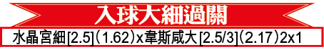 同日另一場,周五宣佈有巴舒亞伊以外借身份加盟的水晶宮,會在主場對陣修咸頓。翻查過去幾季紀錄,兩隊均較為慢熱,在開鑼戰的成績不算出色。而且雙方過去四次交手,入球也不多於兩球,今場可取「入球大細」[2.5球]的「細」。(球賽編號:星期六16;now621台今日10:00pm直播)