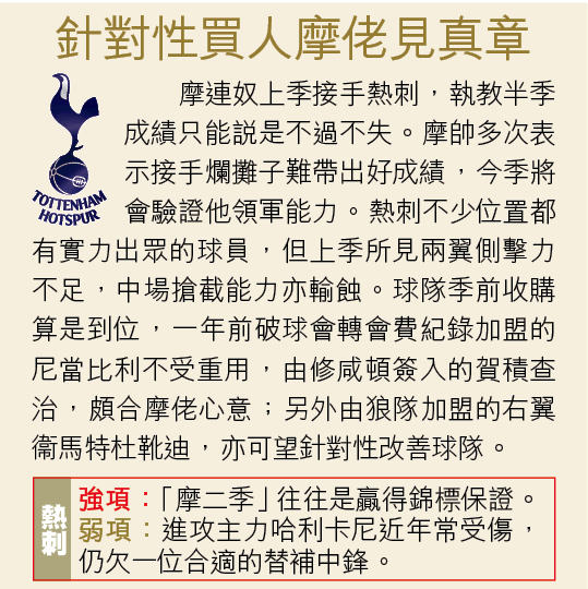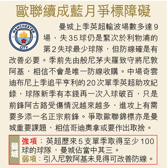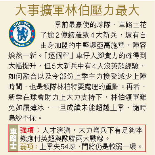 展望新季,紅軍實力仍強,然而能否保持壓倒性強勢,隱憂也是存在。球會買賣球員考量甚多,開季前只有希臘左閘森美卡斯一員新兵,高普希望羅致的拜仁慕尼黑中場堤亞高艾簡達拿,似乎正越走越遠。