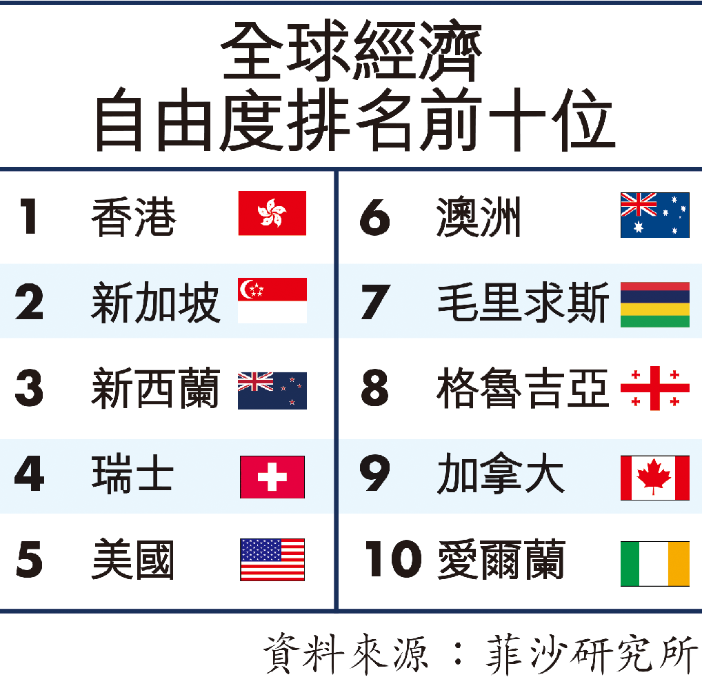 【本報訊】加拿大智庫菲沙研究所(Fraser Institute)前日發表《世界經濟自由度2020年度報告》,香港再次獲評為全球最自由經濟體,但報告同時指中國干預香港事務,很可能會對香港未來評分造成負面影響,特別在法律制度和產權項目上。