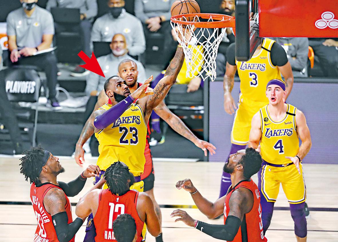 湖人的身高優勢明顯比火箭小球戰術奏巧,今場在兩位中鋒麥伊(JaVale McGee)和懷特侯活(Dwight Howard)均缺陣下,仍能在禁區擁有很大優勢。他們今場搶得的籃板數字為52:26,當中占士和AD摘下球隊一半籃板球;湖人整場在禁區拿到的分數更為62:24,在內線方面完全統治火箭,輕鬆在由頭帶到尾下勝出。火箭球星夏登(James Harden)被守至只拿21分,他整場11投僅2中,有16分來自罰球。