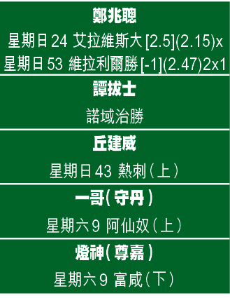 熱刺自2012年後對賽愛華頓保持不敗,加上攻力足以摧毀沒有增兵的「拖肥糖」防線,預計今場兩位前車路士及皇馬教頭對賽摩連奴將會技高一籌,故推介熱刺讓半/一的上盤作為參考。