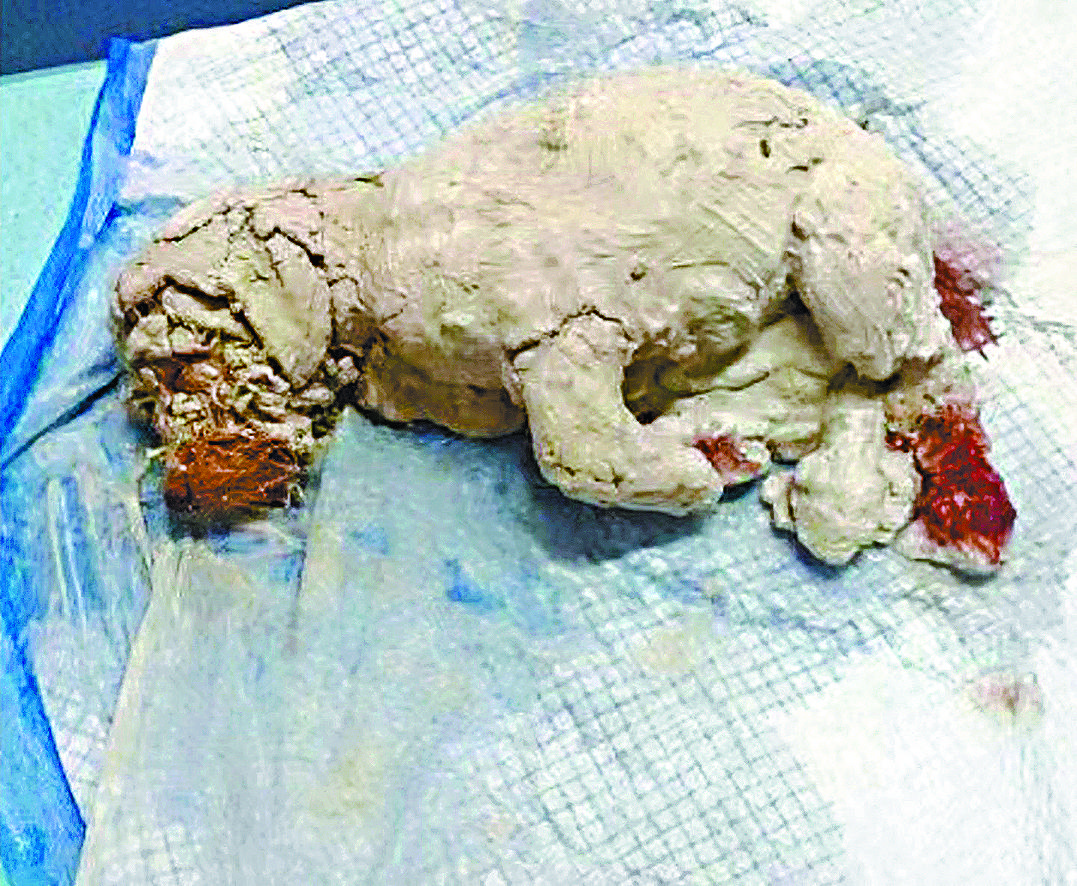 獸醫指石膏長時間滲入小狗眼睛,令視網膜嚴重受損致失明,其尾巴斷裂、腳掌有兩處骨折。獸醫估計,小狗只有三個月大,身上傷痕纍纍,相信曾遭虐待。中國一直未制訂《反虐待動物法》,無例可管下,虐待動物行為無日無之。