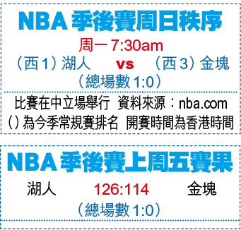 NBA常規賽最有價值球員(MVP)獎項得主於上周五揭曉,結果大熱門之一的湖人球星勒邦占士(LeBron James)總得分排第二落選,由公鹿球星「字母哥」安迪度安寶(Giannis Antetokounmpo)蟬聯獎項。雖然占士上周五帶領湖人在西岸決賽第1回合以126:114輕取金塊,領先場數1:0,但他賽後直言落選MVP讓他很生氣,因其首選票居然低至16張。
