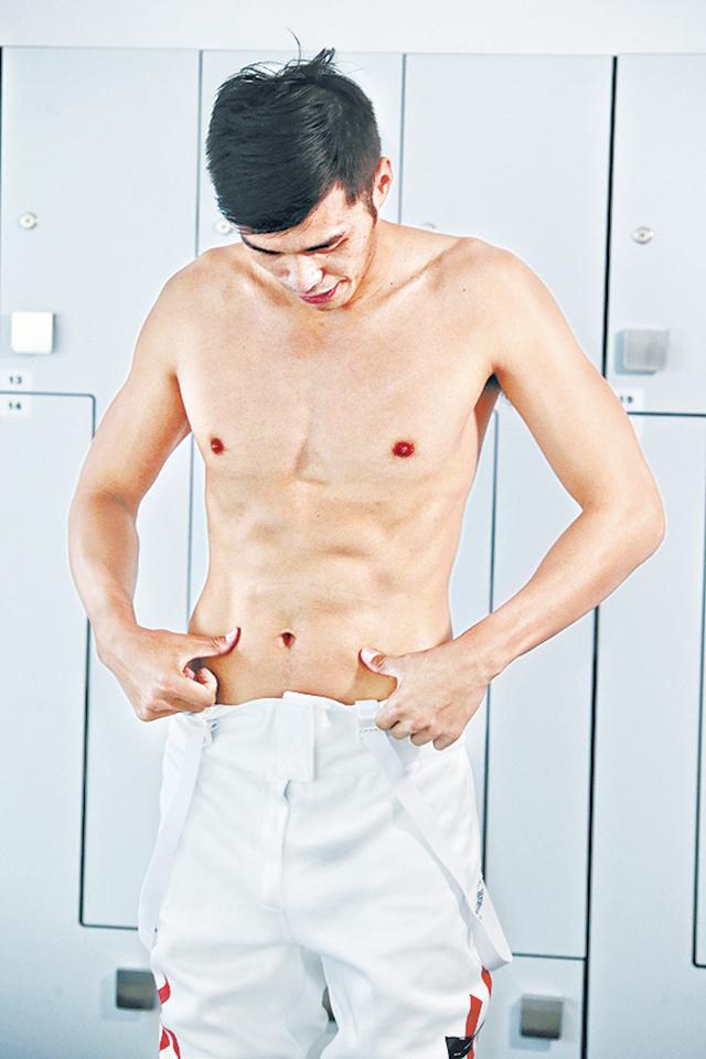 眼前的張小倫像吃了防腐劑,跟10年前沒兩樣,換上數月未穿過的劍擊服時他忍不住說:「你睇吓,褲頭鬆咗幾多!」換衣服時不經意露出肚皮,若隱若現的腹肌令他十分自豪,體形比2010年還要「弗」,今年3月中從美國返港後,體院因疫情嚴峻多次實施「封院令」,小倫大部份時間到「劍舍」訓練,沒想過效果比預期好。