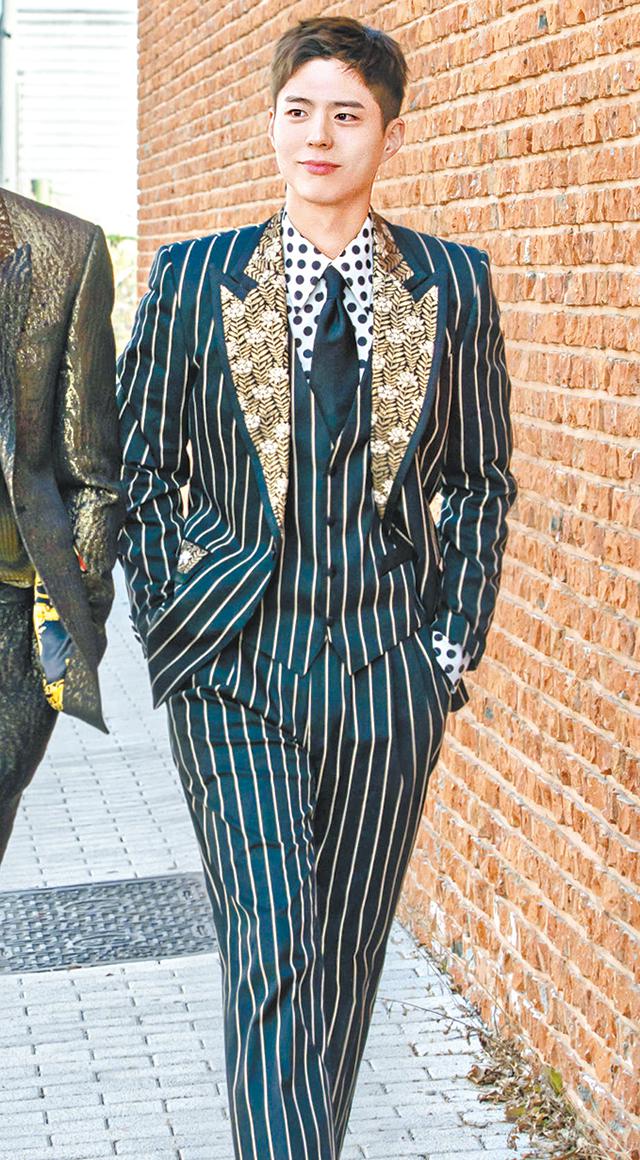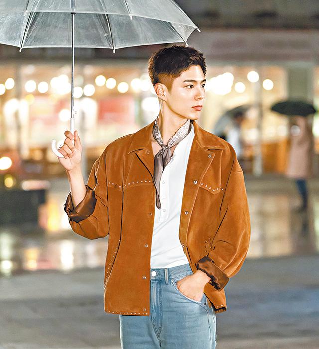 T-shirt以外,以hoodie搭配西裝外套能塑造有層次的輕鬆休閒造型。朴寶劍以黑色T-shirt與hoodie,配襯啡色套裝;又以hoodie搭配米色背心外套和冷帽,是時下的年輕街頭穿搭示範,柔和的大地色調更予人舒服踏實的氛圍。