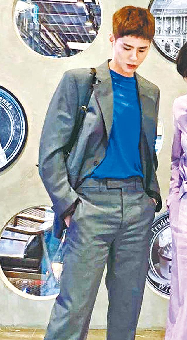 第7集,穿上韓國設計師品牌Beyond Closet的燈芯絨西裝外套,袋口飾上刺繡圖章,加上白T-shirt,簡單乾淨,充滿貴公子氣息。第5集,就以深灰色西裝套裝,內襯電子藍色T-shirt,營造撞色效果,其實只要稍稍在顏色配搭花心機,便能塑造出截然不同的效果。
