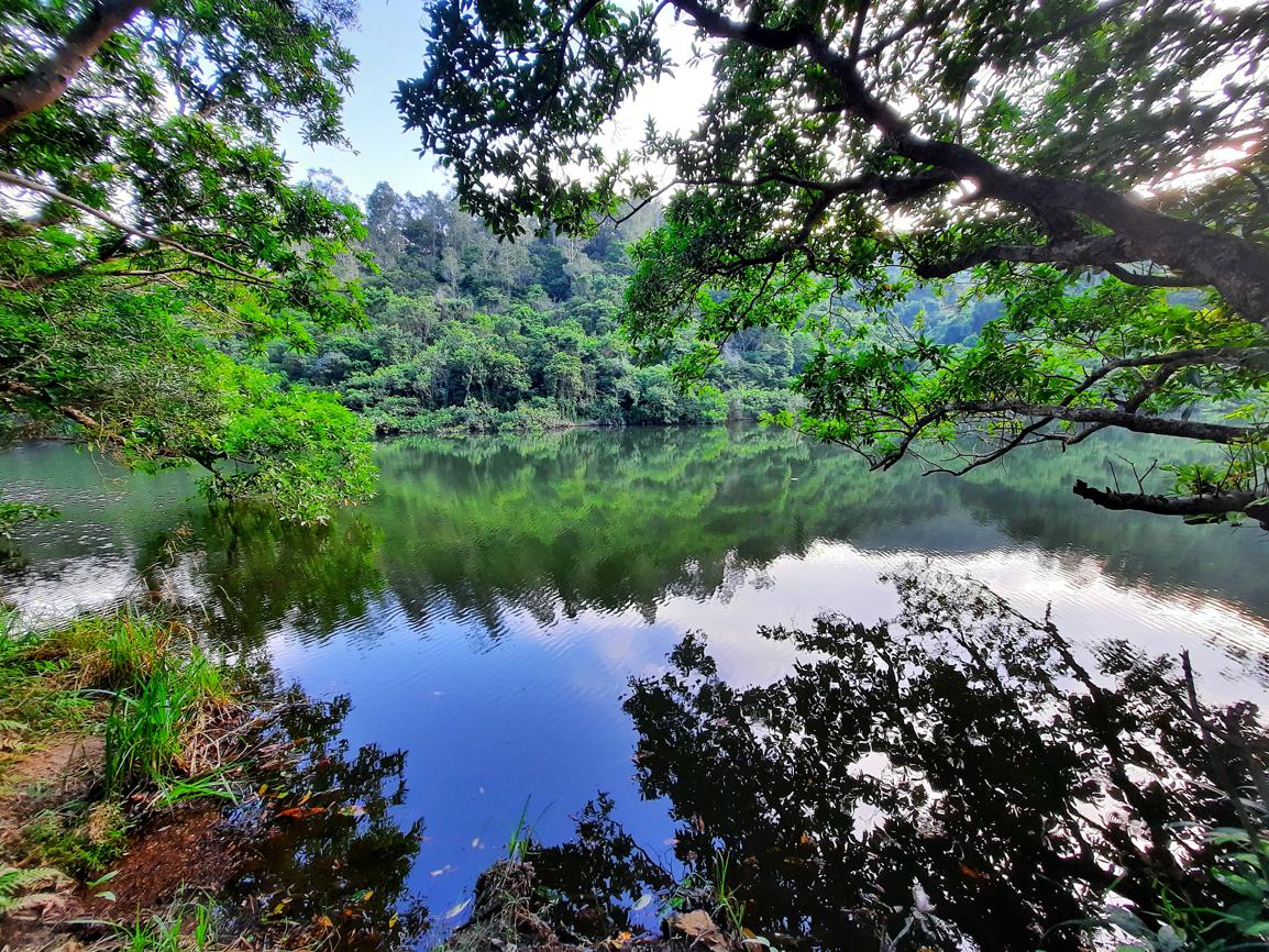 源自黃嶺的黃鶴石澗,是丹山河上游的主源,流經平山仔注入鶴藪水塘,古道數渡清溪,其中一段更是林中沿溪而行,異常清幽。座落溪谷北面的屏風山,沿途主宰着天際線,不難明白,為何為平山仔原名「屏山寨」。高山流水,風景優美,平山仔卻早成廢村,關於平山仔的歷史,公開的資料甚少,吾友啟聰曾向村中父老打聽,雖是鄰村,所知亦不多。他曾向我展示一張他爺爺手繪的地圖,那裏原有四條村,特別之處,是其中一條是圍頭人,講本地話,其餘都是客家,兩村張姓,另一村鄭姓,可惜地圖未列村名,只寫張屋、鄭屋,圍頭村更姓氏不明,只標示為「本地屋」,位置最接近現時古道橫越黃鶴石澗的木橋。也許山村確實太過偏遠,當地人比沙羅洞村民更早出走,六十年代前已荒廢,但現在仍有村代表,村民主要移民英國,部份則遷出大埔。
