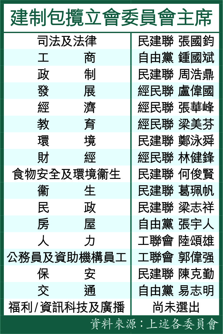 【本報訊】立法會一連兩日為舉行事務委員會主席選舉,結果18個事務委員會,16個已選出主席,全由建制派包攬,福利事務和資訊科技及廣播事務兩個委員會由民主派負責主持選舉,未能選出主席,下次會議再續。建制派何君堯在主持選舉主席時,阻止議員發言、拒絕議員的提名、甚至以「熄咪」禁止議員發言,手段被批評「與黑社會差唔多」。