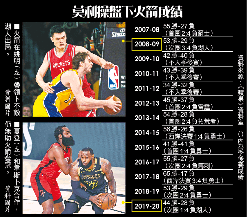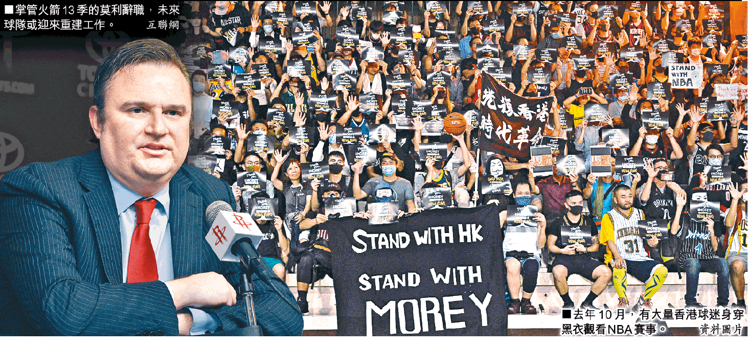 去年10月初曾在twitter上載「Fight For Freedom」及「Stand With Hong Kong」圖像、聲援香港人爭取民主自由的NBA火箭總經理莫利(Daryl Morey)周四辭職,結束長達13季掌管火箭的生涯。