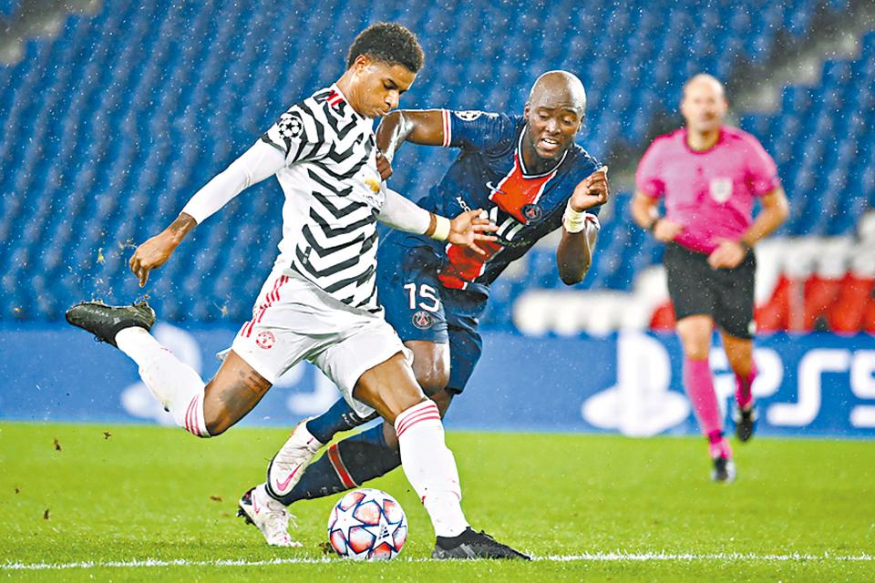 曼聯在開賽23分鐘先開紀錄,安東尼馬迪爾在禁區內被艾度迪亞路侵犯,般奴費南迪斯(前譯波基斯費南迪斯,B費)主射雖被撲出,但經VAR判定後,球證示意門將基羅拿華斯在B費主射前雙腳均已離開白界,B費第二次機會中鵠。PSG在55分鐘扳平,功臣馬迪爾門前解圍誤擺烏龍變罪人;戰至87分鐘,拉舒福特接應後備上陣的保羅普巴傳球,轉身殺入禁區射入,助曼聯以2:1擊敗PSG。有趣的是2019年3月擊敗PSG一役,正是靠拉舒福特在補時射入12碼確定晉級。