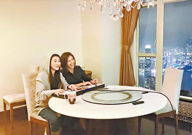 Angela的單位設計簡約,落地玻璃窗景觀開揚,而飯廳的長形雲石飯枱盡顯氣派,坐足六個人都好鬆動。客廳十分寬敞,即使放置七呎高的巨型聖誕樹都綽綽有餘,廚房放得落三邊廚櫃,居於頂樓的Angela亦特別在天台放置大飯枱招呼朋友,更設有燒烤爐。