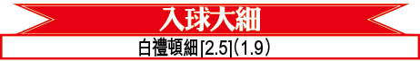 周一英超頭場,白禮頓主場迎戰「升班馬」西布朗。兩軍近況同樣差勁,白禮頓各項賽事已經四場不勝,西布朗更尚未打開聯賽勝利之門。再者兩支球隊攻力一般,隨時又迎來悶戰一場,今仗寧敲「入球大細」[2.5球]的「細」。(球賽編號:星期一2;now621台明日1:30am直播)