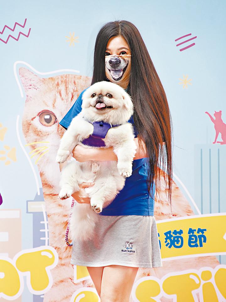 一向愛狗如命嘅傅明憲噚日去灣仔出席活動,佢仲攜同10歲大嘅愛犬「文文」到場。傅明憲戴埋狗嘴嘅口罩抱住「文文」合照,相映成趣。