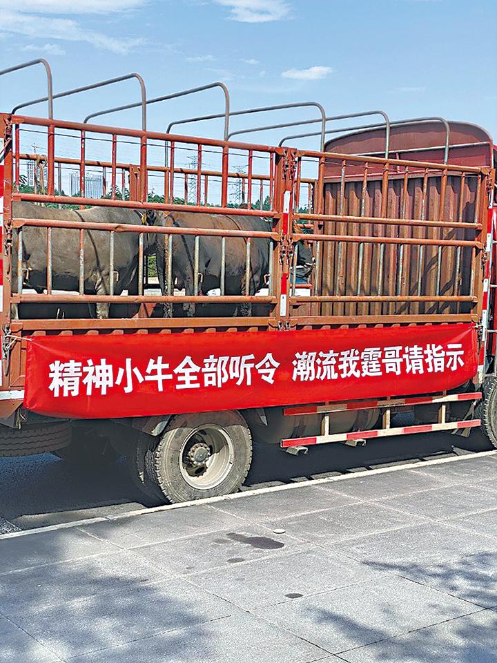 陳偉霆近日去成都錄影《潮流合夥人2》,但比佢更搶鏡嘅,係一架載住兩隻牛嚟支持嘅應援車,車身橫額仲寫住「精神小牛全部聽令 潮流我霆哥請指示」。