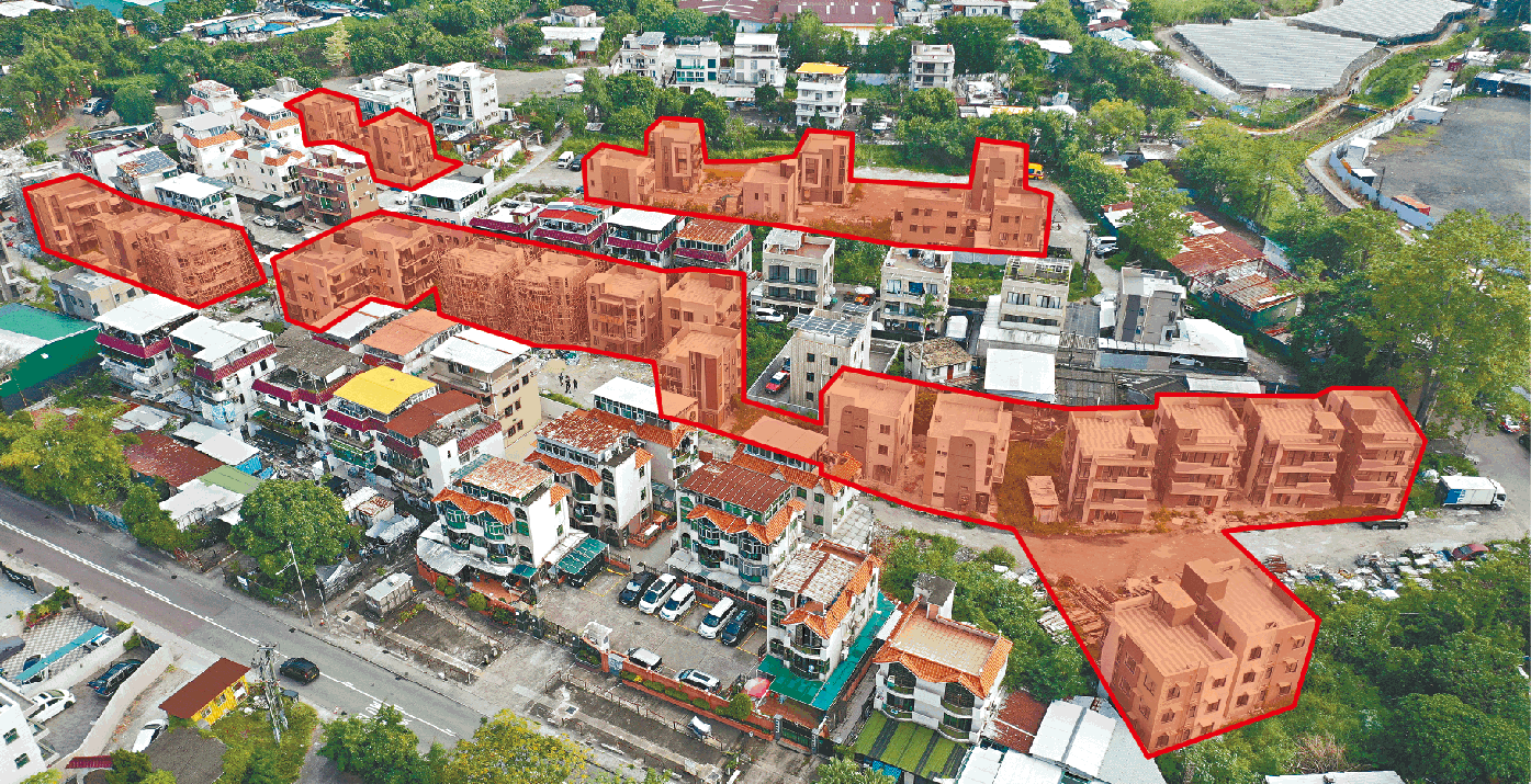 【本報訊】丁屋特權一直為人詬病。民間團體本土研究社最新一份「套丁」報告發現,疑似套丁丁屋總數突破一萬幢,當中以元朗區情況最嚴重。抽查發現,鄉事派梁福元長子梁智峯任董事的公司自08年起以高價在大棠收地,再將有關地段𠝹細轉手予原居民興建丁屋,涉事地段現正興建最少27幢外型相近的豪華丁屋。梁福元回應稱:「犯法如果有確實證據咪去拉佢囉。」