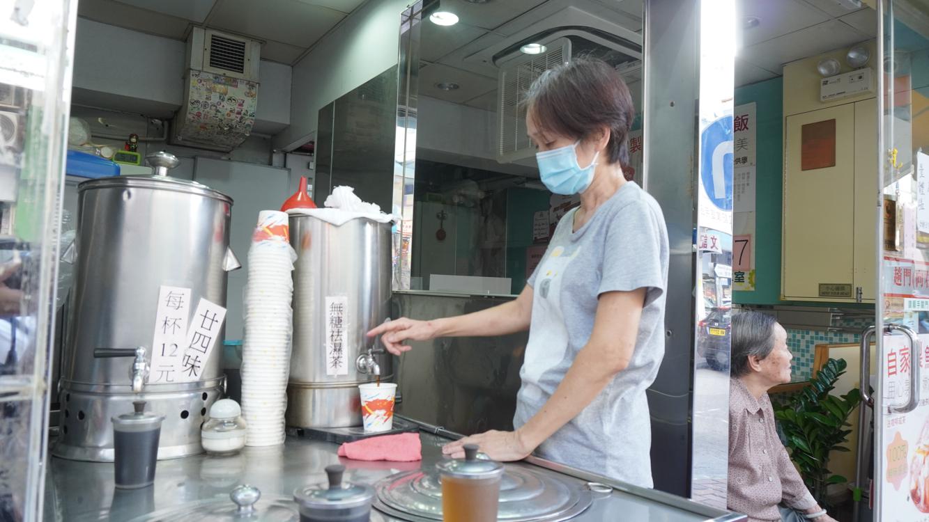 年過80歲的秋嫂瞇着眼憶起往事,仍笑不攏口。年輕時,秋嫂跟丈夫在石湖墟擺攤賣菜做木屐,丈夫患病後,秋嫂跟契媽學煲涼茶。半世紀以來秋嫂只賣祛濕茶、菊花茶和廿四味,如今女兒仍跟着母親當年學師後再自行調配的配方,花心機熬煮。祛濕茶以木棉花、雞蛋花、夏枯草、玉竹等藥材煲成,為了保留風味,秋嫂堅持下山地,毫不介意藥材成本貴,照樣街坊價12元一杯。茶甘香爽甜,靠它養活一家七個孩子。如今張秋記涼茶沒有招牌,只有置放於冰室一角的不銹鋼涼茶車,由兩個女兒玉妹及秀芬一起經營,秋嫂則一張凳仔,一把太陽傘,在街邊跟街坊打牙骹過日辰。