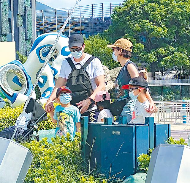 【爆相爆片】陳豪和陳茵媺在疫情仍未緩和下,日前帶兩子及囡囡到海洋公園遊玩。讀者陳小姐透過《蘋果》「爆相爆片」分享,日前下午見到陳豪一家五口及外傭於下午時分現身,由於當日並非假期因而人流不多,即使只是到達公園門口,眾小朋友已表現興奮,陳小姐表示:「嗰日我啱啱離開就見到陳豪一家人嚟到,仲喺入口處嘅水池玩咗一陣,又叫女傭揸機影相,影咗幾張合照,佢哋先入場。」