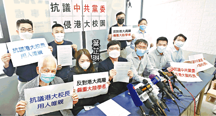 【本報訊】香港大學校委會今日開會,表決是否任命包括疑為中共黨委的兩名清華大學教授為副校長。多個民間團體及區議員表達關注,批評校長張翔用人唯親,染紅港大。港大學生會稱今日會向校委會遞交有逾2,100名港大師生及校友簽署的聯署信,並探討可否發起法律行動。