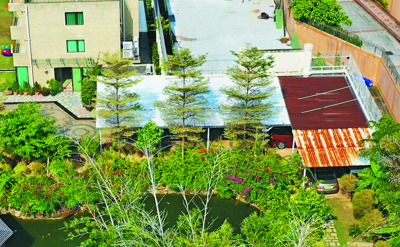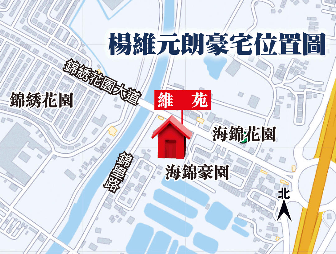 富臨集團在去年反修例風波中被指靠攏福建幫,福建幫涉及毆打示威者。本報最新調查發現,該集團行政總裁楊維位於元朗錦壆路的居所涉及多項僭建,該大宅座落私人地皮內,建有三幢三層高村屋,一幢長形平房、露天泳池、標準籃球場、巨型園林錦鯉池塘及池畔涼亭等,佔地面積約七萬方呎,並以高牆大閘分隔,取名「維苑」。