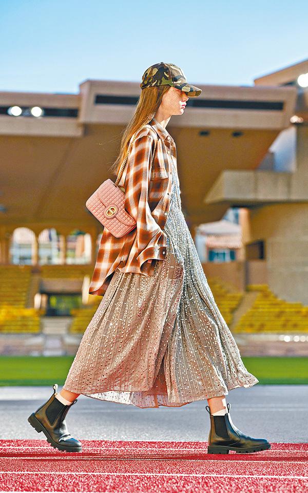 此外,biker jacket與sweatpants、西裝外套搭配sports bra及棉質短褲,風衣下是法式連身裙,將奢華與運動甚至是舒適自在居家風格互相結合,模特兒都戴上棒球帽,又或者漁夫帽,並換上平底鞋款,設計與造型都注入更多年輕、隨性的活力。