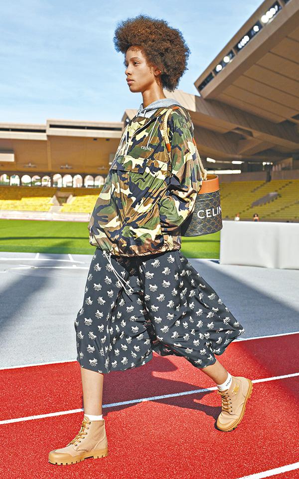 Hedi Slimane主理的Celine於前日發佈2021春夏女裝系列。每季都以巴黎凱旋門為精神指標的Hedi Slimane,自從在法國南部一級方程式賽道發佈了2021春夏男裝系列,並以「紀錄片」形式登場後,新季女裝系列也相呼應,短片於摩洛哥路易二世體育場拍攝。在打着Gen Z的旗號以及陽光與藍天下,模特兒穿上80年代復古風格上衣,雙手插在牛仔褲,自信從容行於跑道上大步行走。