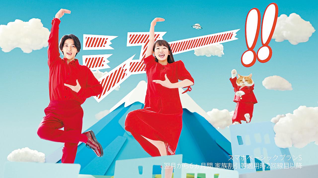日本女星吉岡里帆與新世代型男橫濱流星為電訊商拍廣告,齊擺出已故漫畫家赤塚不二夫代表作《天才笨蛋邦》的經典單腳甫士,甚考平衡力。