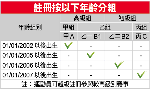過往分成A、B、C grade作賽的羽毛球、籃球、足球、手球、投球、欖球、七人欖球、乒乓球及排球等球類項目,在本賽季將減至兩個年齡組別,即初中和高中組。高中組適齡學生為2002年1月1日或之後出生的原A Grade學生,以及2005年出生、俗稱「大B」的B grade學生;初中組適齡學生則為C Grade及2006年出生的「細B」。