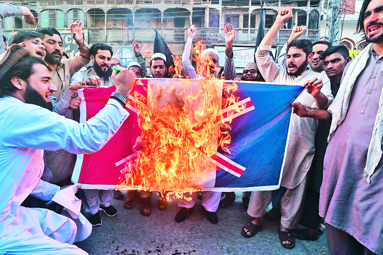 在這思潮下,馬克龍計劃立法規管不符合共和國法律的伊斯蘭習俗,又發表挺先知穆罕默德肖像的言論。這些無差異針對穆斯林的政策和立場不但被指摘是藉故打壓伊斯蘭教和仇恨穆斯林,更惹來土耳其等穆斯林國家圍攻。
