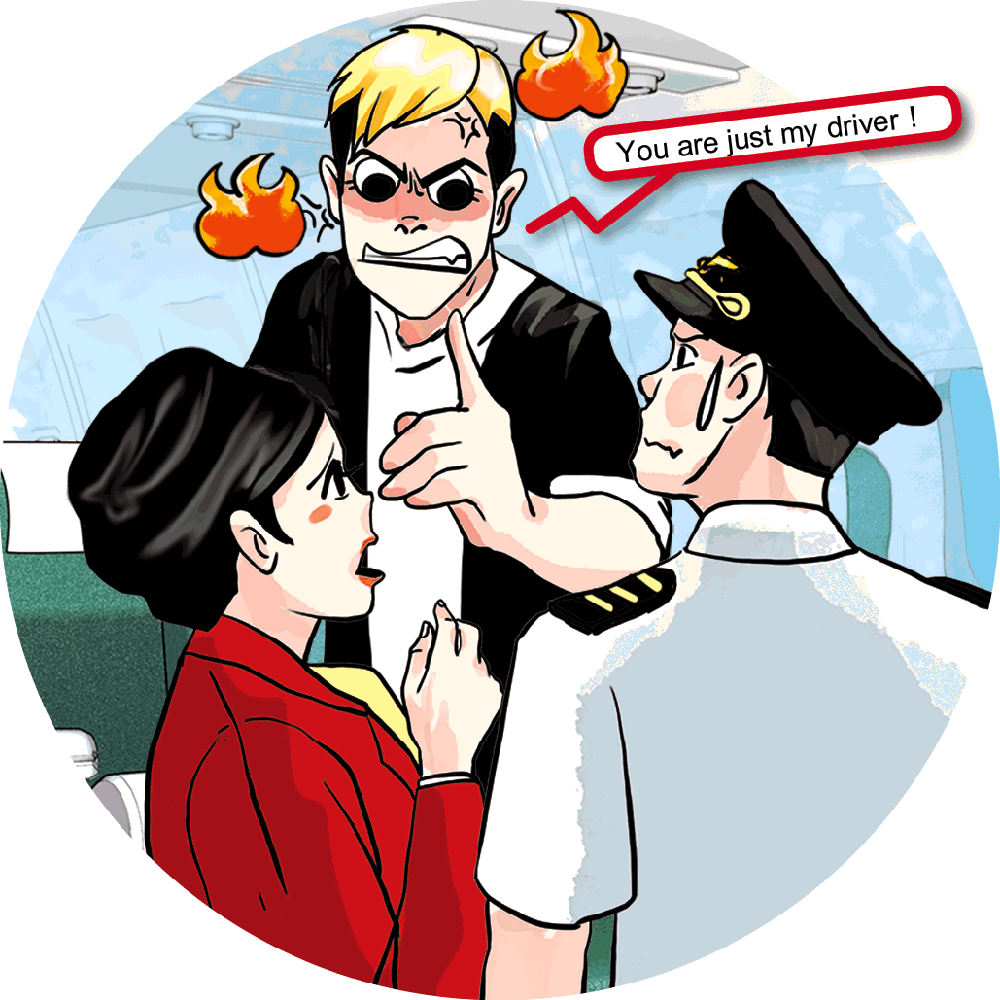 愛追潮流、育有一女的西客,不但會用粗口及惡言侮辱機組人員,還會掉東西。最經典莫過於有次西客不滿時,機長親自上前處理,他竟指着機長說:「You are just my driver!」=