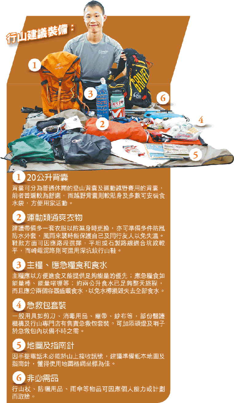 資訊爆炸年代,市民能輕易在網上搜尋到上山資料,但當中的路線難度評級或許較為主觀,新手可能對評級感到疑惑,高、中、新手的路線難度,如非親身體會難有準確答案,竣sir建議新手可參考康文署的《行山樂》的路線評級,不但有難度指數,由最容易的1級至最難的4級分類,亦有將景色分類。雖然不及外國詳細,但尚算方便市民查閱,竣sir笑稱:「這些資訊就可以信政府,不怕。」現今世代「打卡」雖然是必須,但不應大動作拍照,如跳起等。
