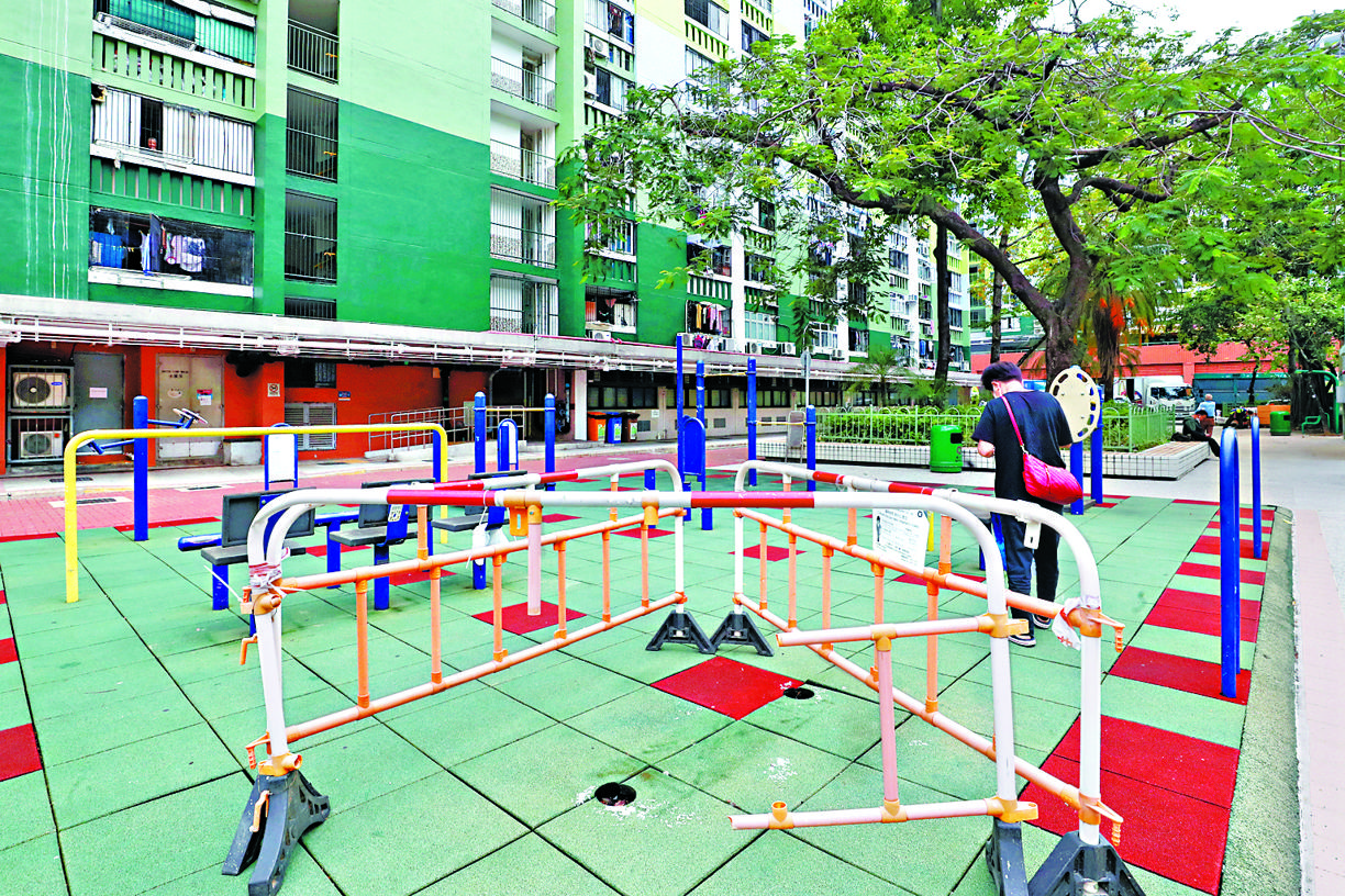 【本報訊】申訴專員公署主動調查發現,公共屋邨遊樂設施日久失修情況普遍,有兒童遊樂場地墊方塊捲曲及高低不平,方塊間罅隙可放下一元硬幣,又有設施只剩支架,金屬零件凸出,危及兒童安全。不少屋邨的遊樂設施損壞多時仍未獲修理,去年有逾五成簡單維修工程逾期,最長需時八個月才完成維修。申訴專員建議房署加強監督屋邨遊樂設施的維修。
