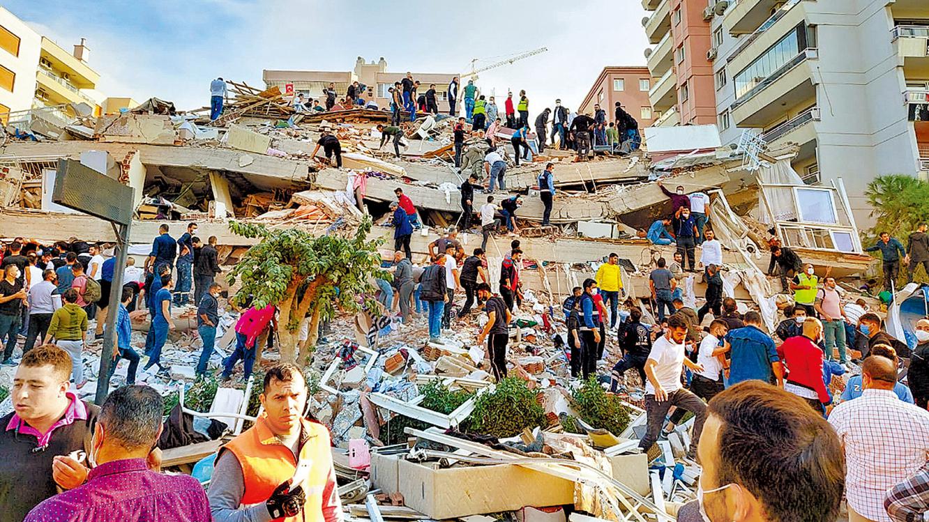 土耳其西部伊茲密爾省近岸昨發生黎克特制七級地震,第三大城市伊茲密爾(Izmir)多棟建築物倒塌,鄰近多國也感受到震動,並有小型海嘯,有人被困,至少6死200傷。