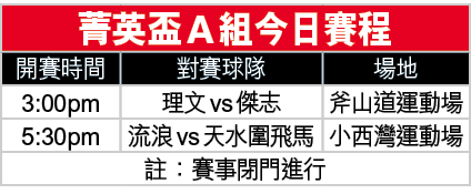 【本報訊】理文今午三時在斧山道運動場閉門上演的菁英盃A組分組賽,挾上仗五球大炒天水圍飛馬的強勢挑戰衞冕傑志。