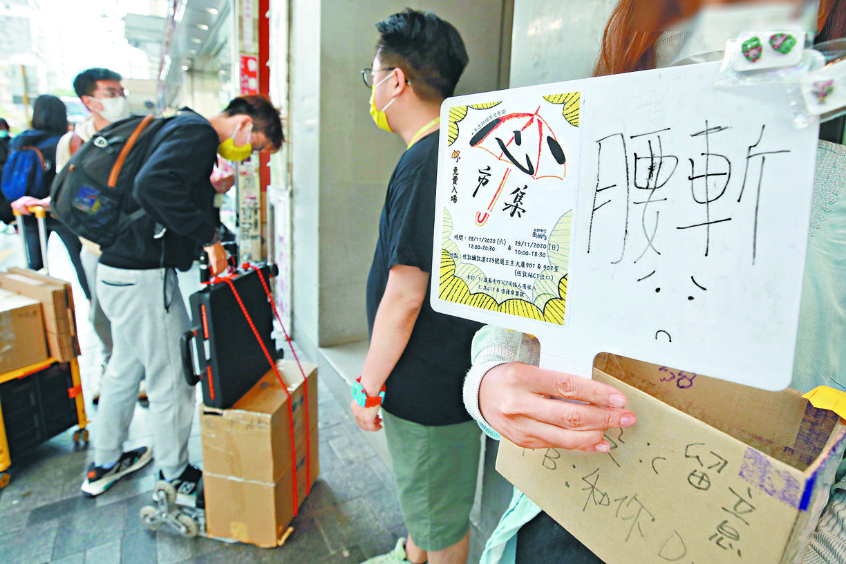 【本報訊】白色恐怖無日無之,紅色界線隨時觸及。有網民前日起在佐敦舉辦一連兩天的「傘心市集」,惟主辦單位昨早在社交網站宣佈各商戶要即時離開,未有進一步交代市集突被腰斬原因。有專程到場的市民說,對市集被打壓不意外,「畀人打壓真係太容易」。有傳市集腰斬與附近麵包店投訴有關,惟涉事店舖經理稱對事件不知情。